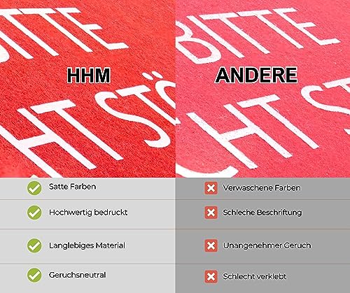 Zunächst einmal spürt man die Qualität des Materials, hochwertiger Filz. Die Schilder fühlen sich stabil an und werden sicher lange halten. Das ist ein großer Vorteil, denn niemand möchte Türschilder kaufen, die sich schnell abnutzen.