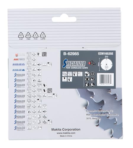 Makita B-62979 TCT Saw BladeI'm a recent convert to Makita, having purchased an 18v x 165 mm brushless circular saw and also an 18v brushless impact driver. I love both products and the circular saw is streets ahead of my previous 230v mains unit. The Makita blades make light work of cross cutting and ripping. Recommended.