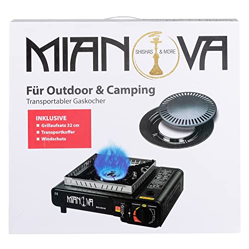 Mianova 2 in 1 LPG Anschluss Campingkocher Gaskocher Set für Gaskartuchen + Grillplatte + Koffer + Windschutz Optional mit Gas