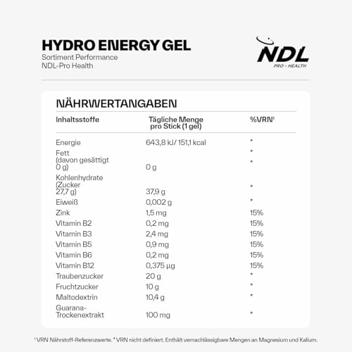 NDL Pro-Health Hydro Energy Gel – Sport-Energiegel mit Kohlenhydraten und Mineralsalzen, zuckerarm, sofortige Energieversorgung, einfach zu öffnen, Cola-Geschmack, Packung mit 12 – 720 g
